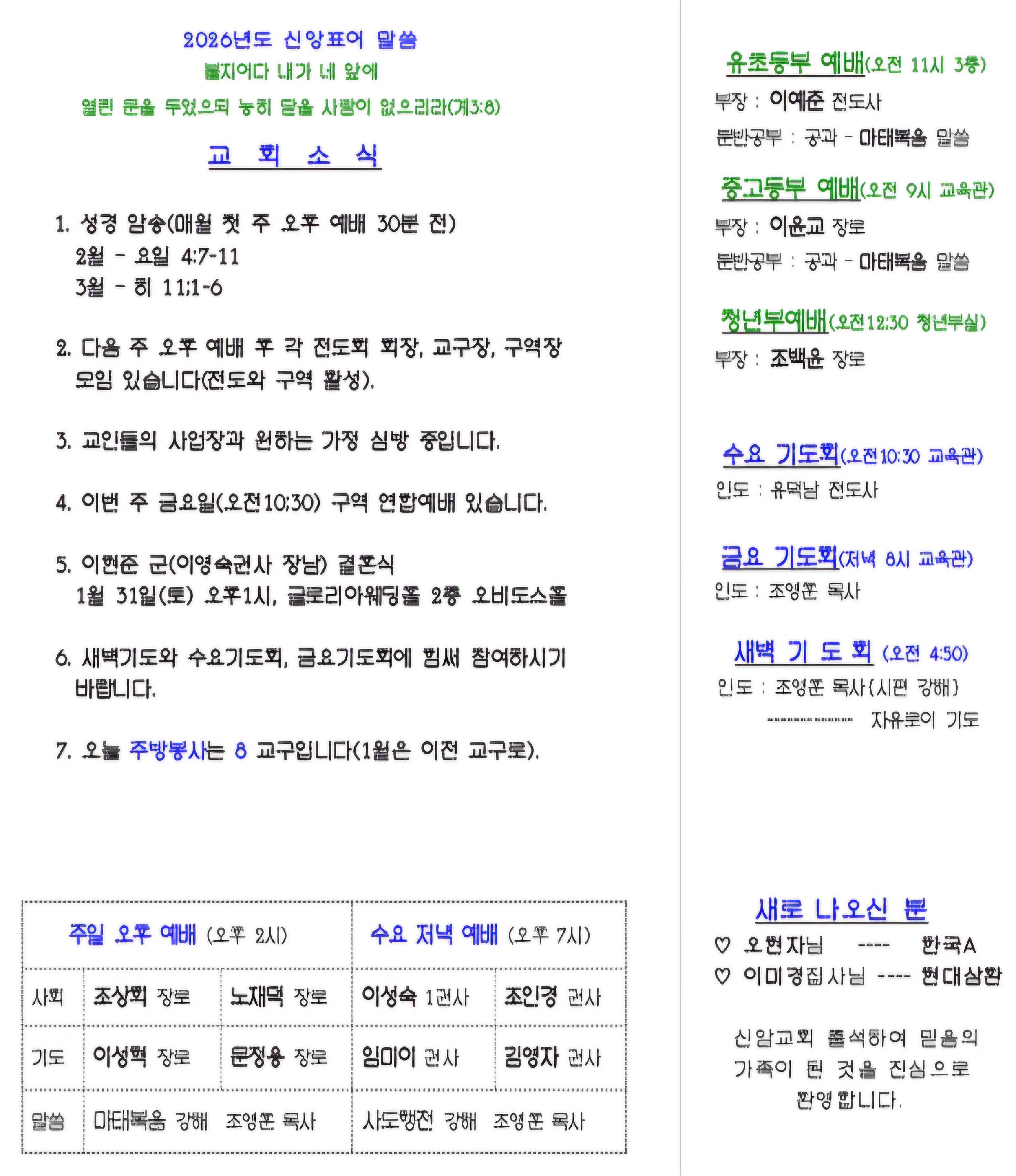 2026년 1월 25일 장년부 주보입니다.