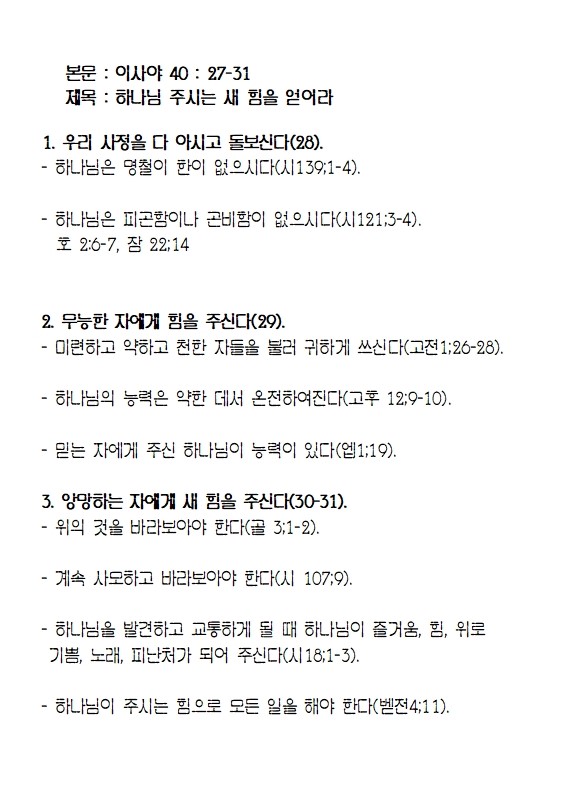 [주일오전] 하나님 주시는 새 힘을 얻어라