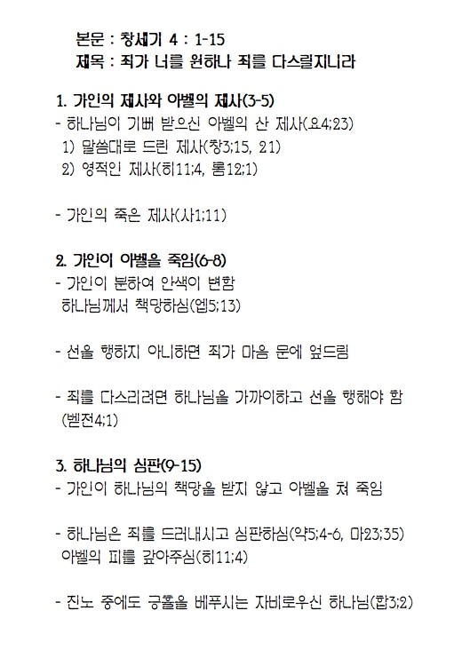 [주일오전] 죄가 너를 원하나 죄를 다스릴지니라