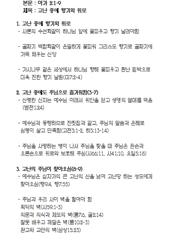 [주일오전] 고난 중에 향기와 위로