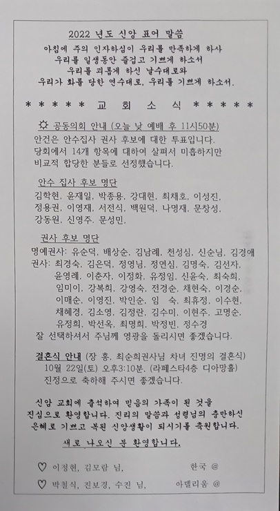 2022년 10월 23일 장년부 주보입니다.