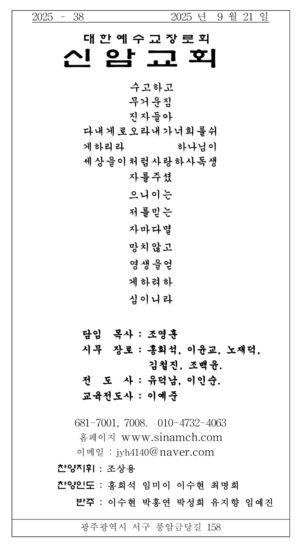 2025년 9월 21일 장년부 주보입니다.
