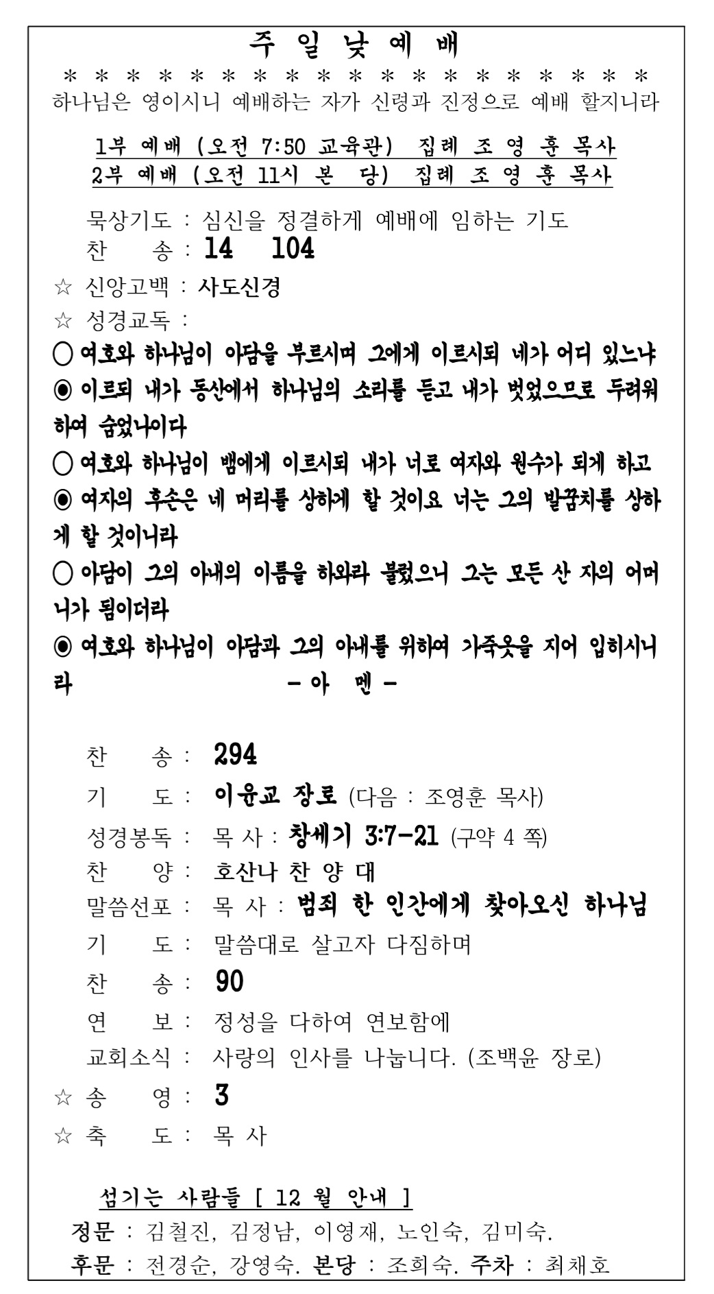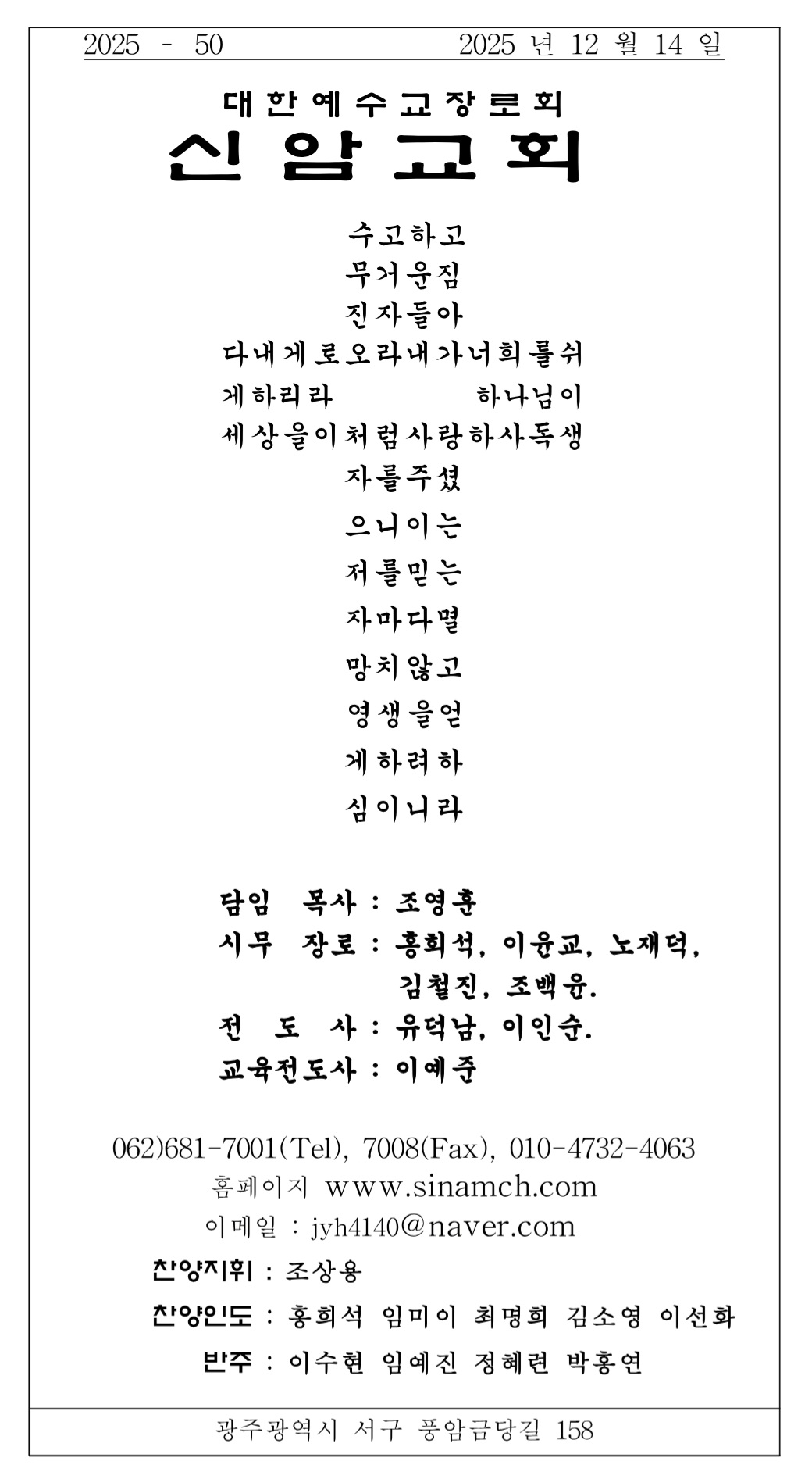 2025년 12월 14일 장년부 주보입니다.
