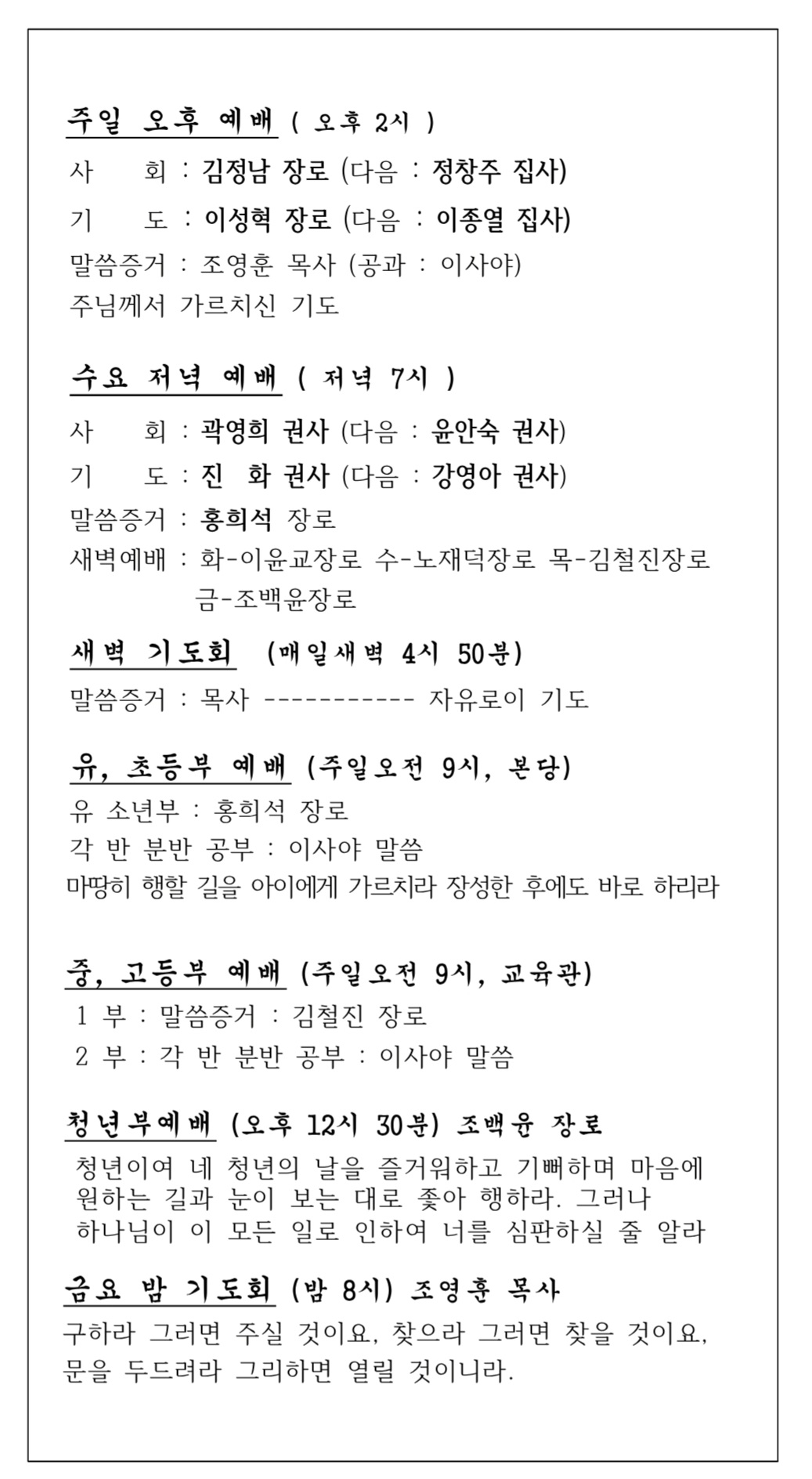 교회부서별활동