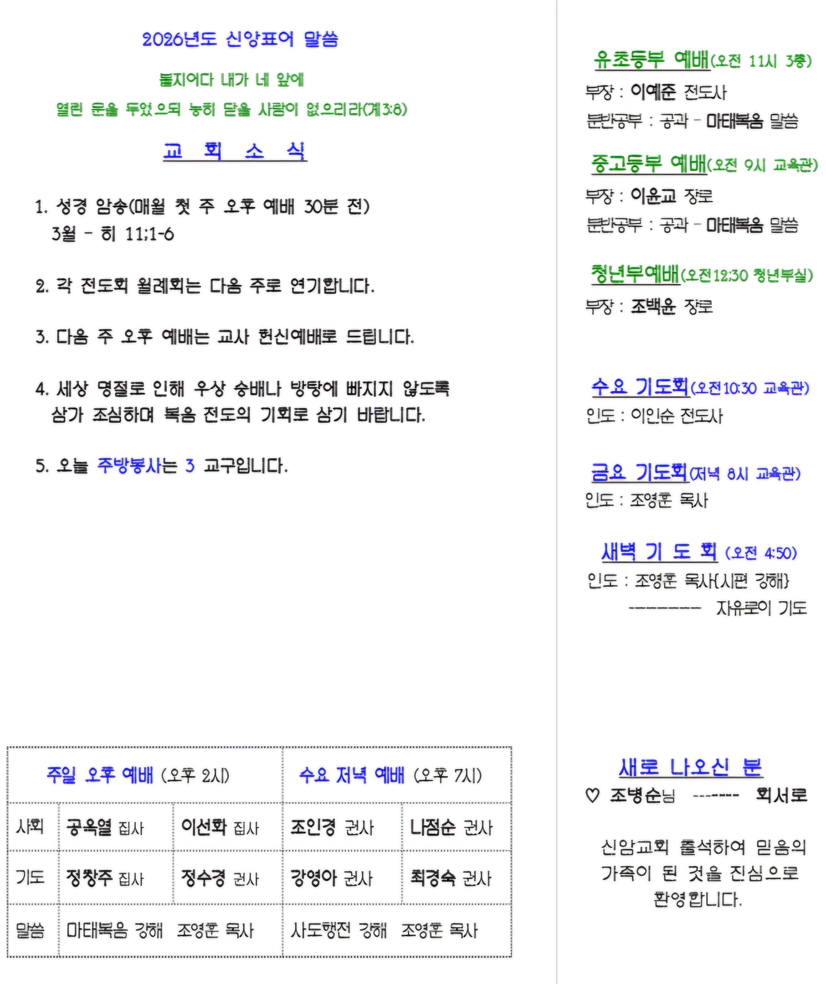 2026년 2월 8일 장년부 주보입니다.